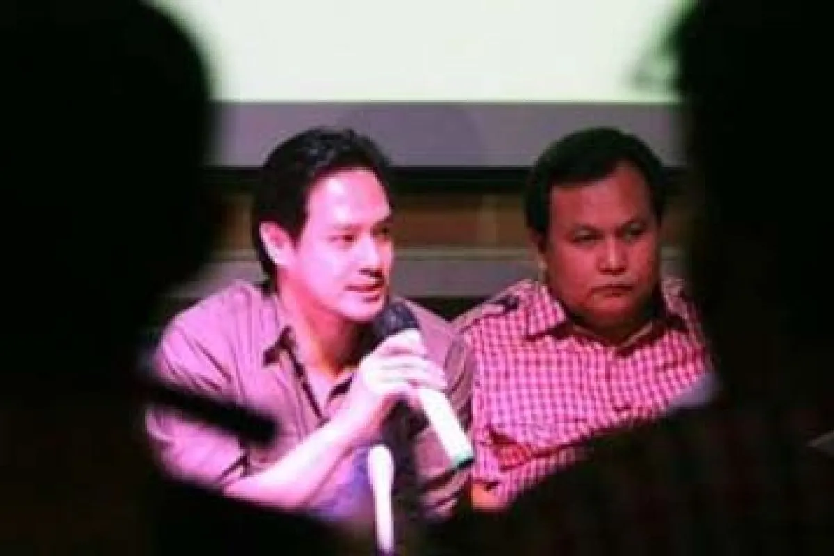 Jakarta (Antara Bali) - Presiden Direktur Big Daddy Michael Rusli (kiri) didampingi Kuasa Hukum Big Daddy Minola Sebayang (kanan) memberi keterangan mengenai pembatalan konser Lady Gaga di Jakarta, Minggu (27/5). Dalam keterangan Promotor Big Daddy menyatakan pembatalan konser dilakukan atas alasan keamanan dan uang tiket konser Lady Gaga akan dikembalikan 100 persen. FOTO ANTARA/M Agung Rajasa/2012.