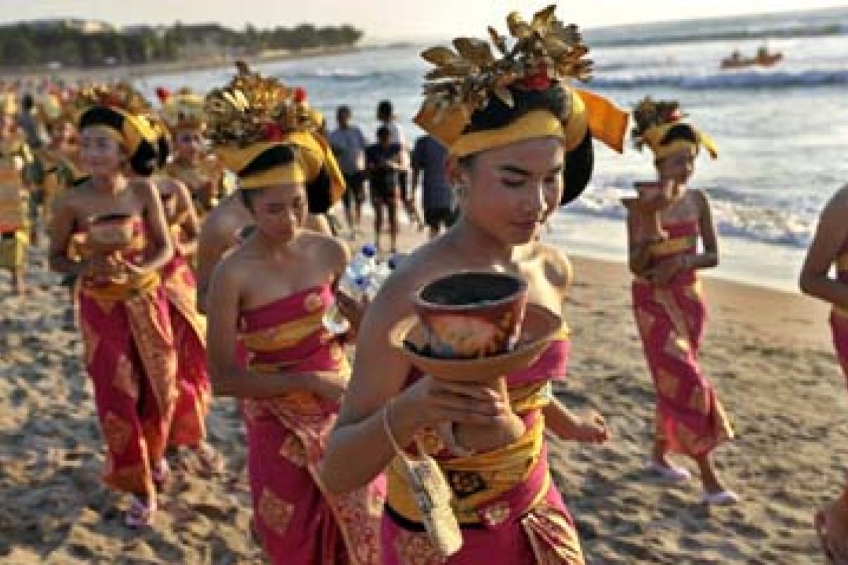 Kuta (Antara Bali) - Sejumlah remaja putri mengenakan pakaian khas Bali dalam parade Kuta Karnival ke-10 di Pantai Kuta, Bali, Rabu (10/10). Festival untuk meningkatkan kunjungan wisatawan itu berlangsung 10-14 Oktober 2012 dengan menampilkan beragam kesenian dan atraksi untuk wisata yang dikemas juga untuk mengenang 10 tahun tragedi bom Bali. FOTO ANTARA/Nyoman Budhiana/nym/2012.