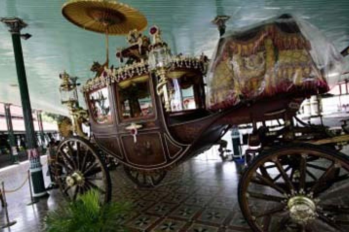 Yogyakarta (Antara Bali) - Sejumlah pengunjung mengamati koleksi Kraton yang dipamerkan pada acara Pameran Kraton Yogyakarta di Pagelaran Kraton Yogyakarta, Minggu (13/1). Pameran yang menampilkan sejumlah koleksi Kraton seperti Kereta Kencana dan juga mobil dinas Sri Sultan HB IX sewaktu menjadi Wakil Presiden RI itu berlangsung hingga 24 Januari 2013. FOTO ANTARA/Noveradika/nym/2013.