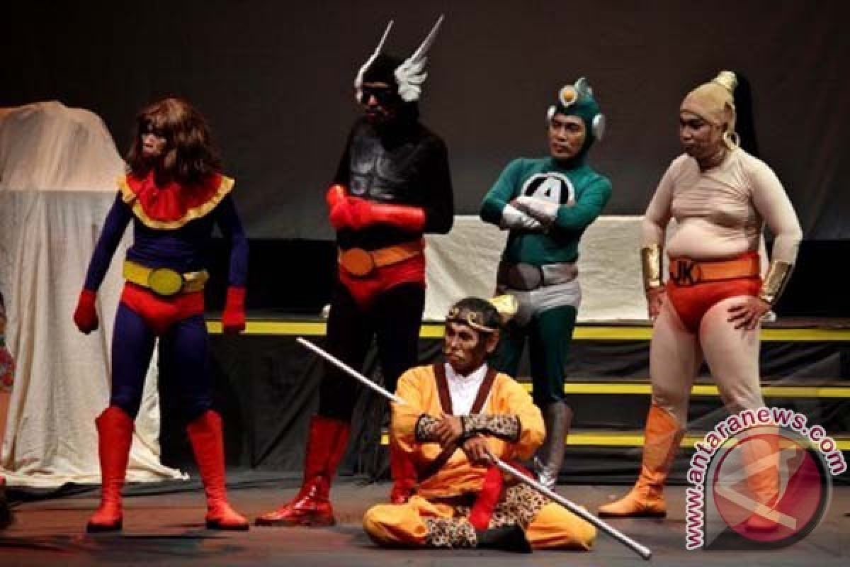1Yogyakarta (Antara Bali) - Pemain Teater Gandrik melakukan gladi bersih pentas teater berjudul Gundala Gawat di Taman Budaya Yogyakarta (TBY), Yogyakarta, Senin (15/4) malam. Mereka akan mementaskan lakon Gundala Gawat yang diinspirasi komik superhero legendaris asli Indonesia tahun 1970-an Gundala Putera Petir karya Harya Suryaminata atau Hasmi di Taman Budaya Yogyakarta (TBY) pada 16-17 April 2013, dan di Taman Ismail Marzuki (TIM) Jakarta pada 26-27 April 2013. FOTO ANTARA/Noveradika/nym/2013.