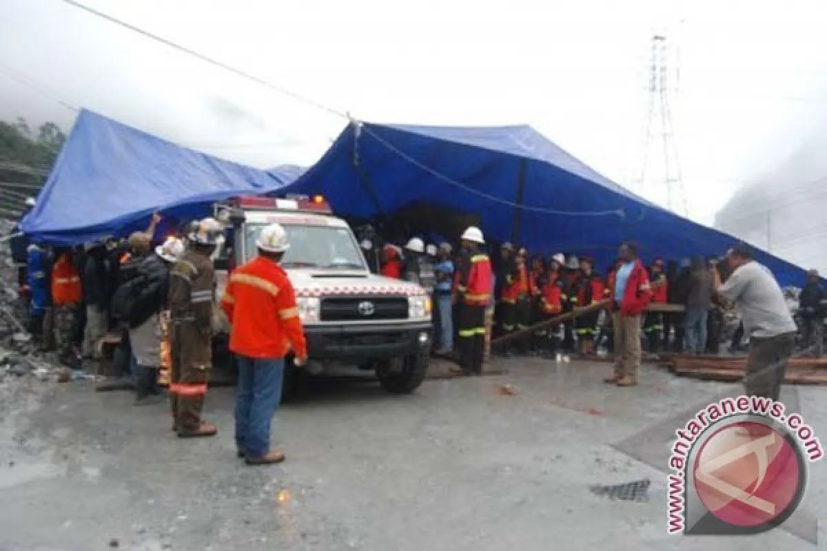1Ratusan pekerja PT Freeport Indonesia berkumpul di Mile 72 menanti ditemukannya rekan mereka yang terperangkap longsong di Terongan Big Gossan, Tembagapura, Timika, Papua, Rabu (15/5). Pada Selasa (14/5) sekitar 41 Pekerja tambang yang sedang mengikuti pelatihan keselamatan kerja di Terowongan Big Gossan PT Freeport Indonesia terperangkap dan tertimbun longsor. Hingga saat ini baru 15 orang ditemukan, 5 diantaranya meninggal dunia. ANTARA FOTO/Spedy Paereng/nym/2013.