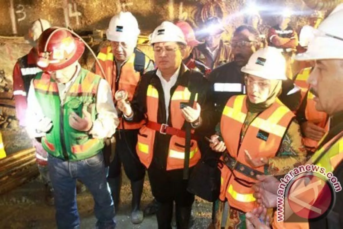 1Wakil Ketua DPR RI Prio Budi Santoso (kedua kanan) dan sejumlah anggota DPR lainnya berdoa saat mengunjungan lokasi kejadian longsor di Terowongan Big Gossan, PT Freeport Indonesia, Tembagapura, Timika, Papua, Minggu (19/5). Kunjungan DPR RI kali ini untuk melihat secara langsung proses evakuasi korban longsor di PT Freeport Indonesia pada hari Selasa (14/5). ANTARA FOTO /Dok-Freeport Indonesia/nym/2013.
