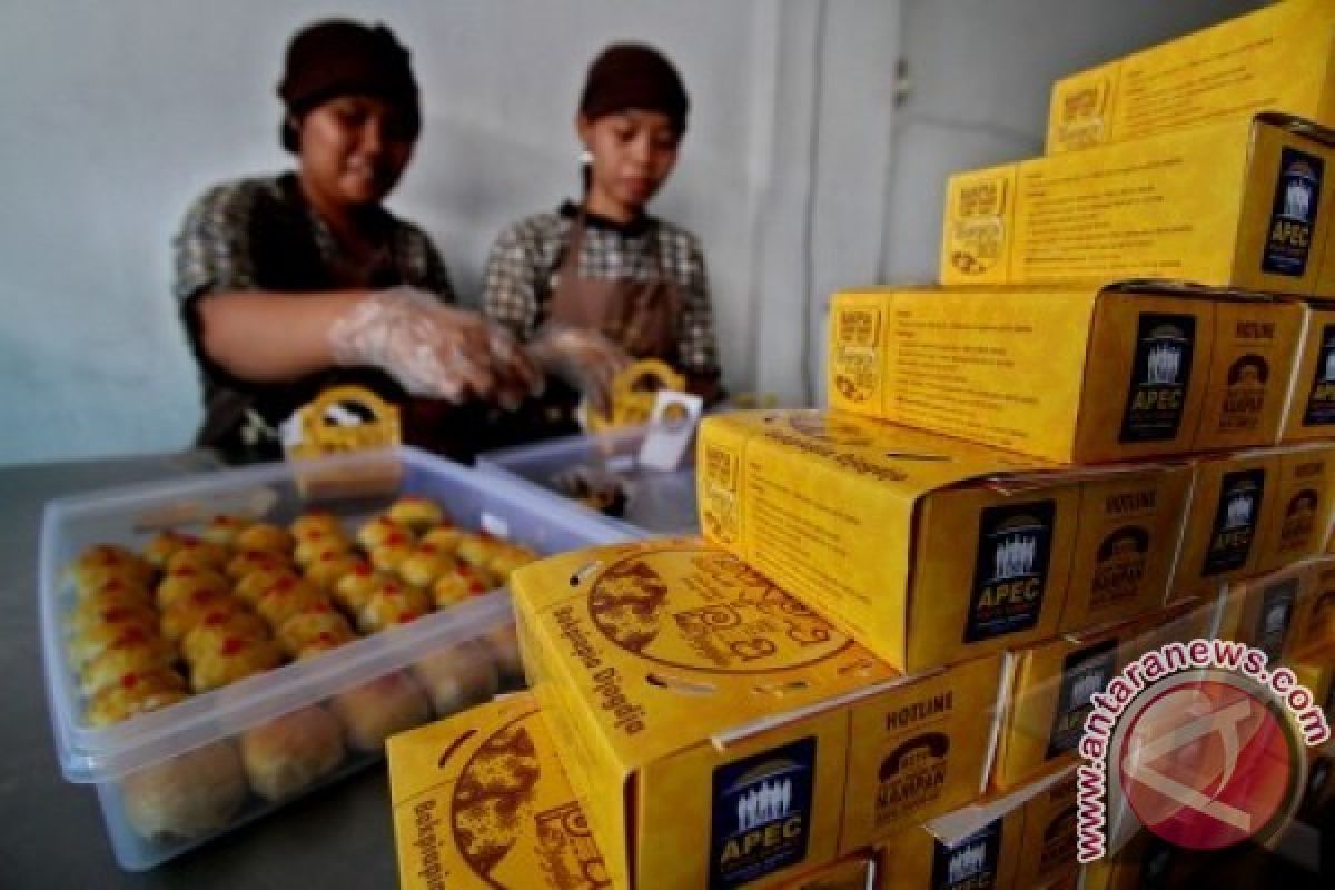 Pekerja melakukan pengemasan bakpia di Pabrik Bakpia Djogja, Bayeman, Jl. Wates, Yogyakarta, Senin (30/9). Bakpia Djogja yang merupakan camilan khas Yogyakarta menjadi salah satu makanan yang disuguhkan pada APEC Youth Summit 2013. ANTARA FOTO/Noveradika/ed/ama/13