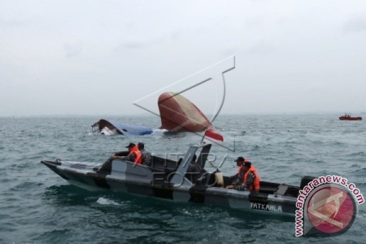 1Tim gabungan KPLP, Basarnas, TNI AL mendekati anjungan depan kapal MV Thorco Cloud yang tenggelam setelah tabrakan dengan kapal MT Stolt Commitment di perairan out of port limit (OPL) Batam-Singapura, Kamis (17/12). Tabrakan antara kapal MV Thorco Cloud berbendera Antigua Barbuda dengan MT Stolt Commitment berbendera Cayman Island terjadi pada Rabu (16/12) sekitar pukul 19.30 WIB. Enam awak kapal MV Thorco Cloud hilang dan masih dalam pencarian. Sementara enam lainnya berhasil dievakuasi menuju ke Singapura oleh patroli MPA Singapura. ANTARA FOTO/M N Kanwa/wdy/15.