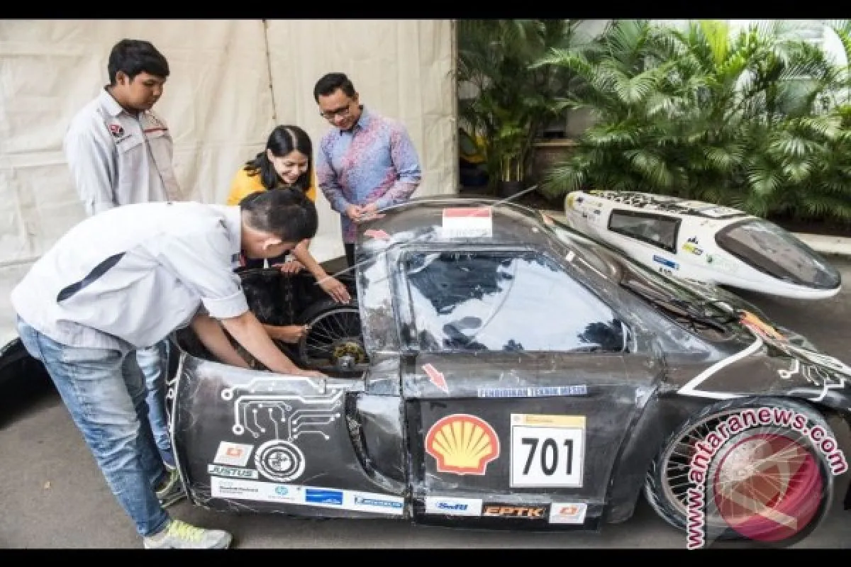 General Manager External Relations PT Shell Indonesia Haviez Gautama (kanan) didampingi Social Investment Manager Anita Setyorini (kedua kanan) dan tim Mahasiswa Shell Eco-Marathon Asia dari Indonesia memeriksa kondisi kendaraan hemat bahan bakar di Jakarta, Jumat (10/3). Sebanyak 26 tim mahasiswa dari 19 perguruan tinggi di delapan Provinsi akan berangkat mewakili Indonesia ke ajang Shell Eco Marathon Asia (SEM Asia) 2017 untuk menguji kendaraan hemat bahan bakar yang dirakit pada Festival Make The future Singapore, 16-19 Maret 2017. ANTARA FOTO/M Agung Rajasa/wdy/17