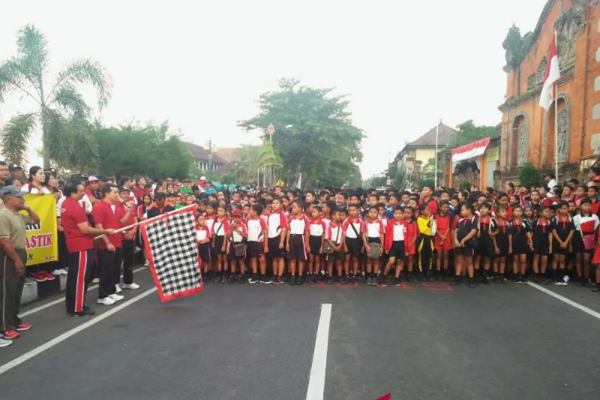 Dalam pelepasan jalan santai tersebut Bupati asal Ceningan ini juga mengisinya dengan kampanye Gerakan Satu Hari Tanpa Kantong Plastik kepada seluruh peserta jalan santai.