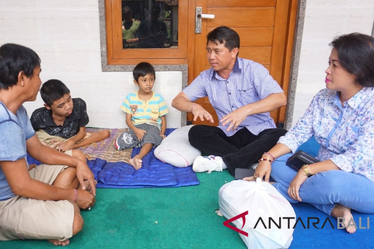 Bupati Klungkung I Nyoman Suwirta bersama isteri menjenguk anak korban kecelakaan yang kehilangan salah satu kakinya, Senin (3/11). (Antaranews Bali/Humas Klungkung/2018)