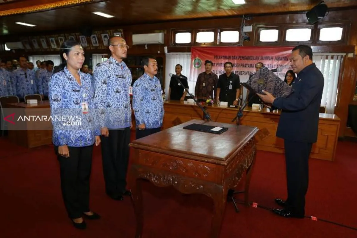 Gianyar, Bali (ANTARA) - Setelah delapan bulan menjabat sebagai Bupati Gianyar, Made Mahayastra melakukan perombakan jabatan atau mutasi perdana terhadap 88 ASN/pejabat eselon II, III, dan IV Kabupaten Gianyar di ruang sidang utama Kantor Bupati Gianyar, Kamis.