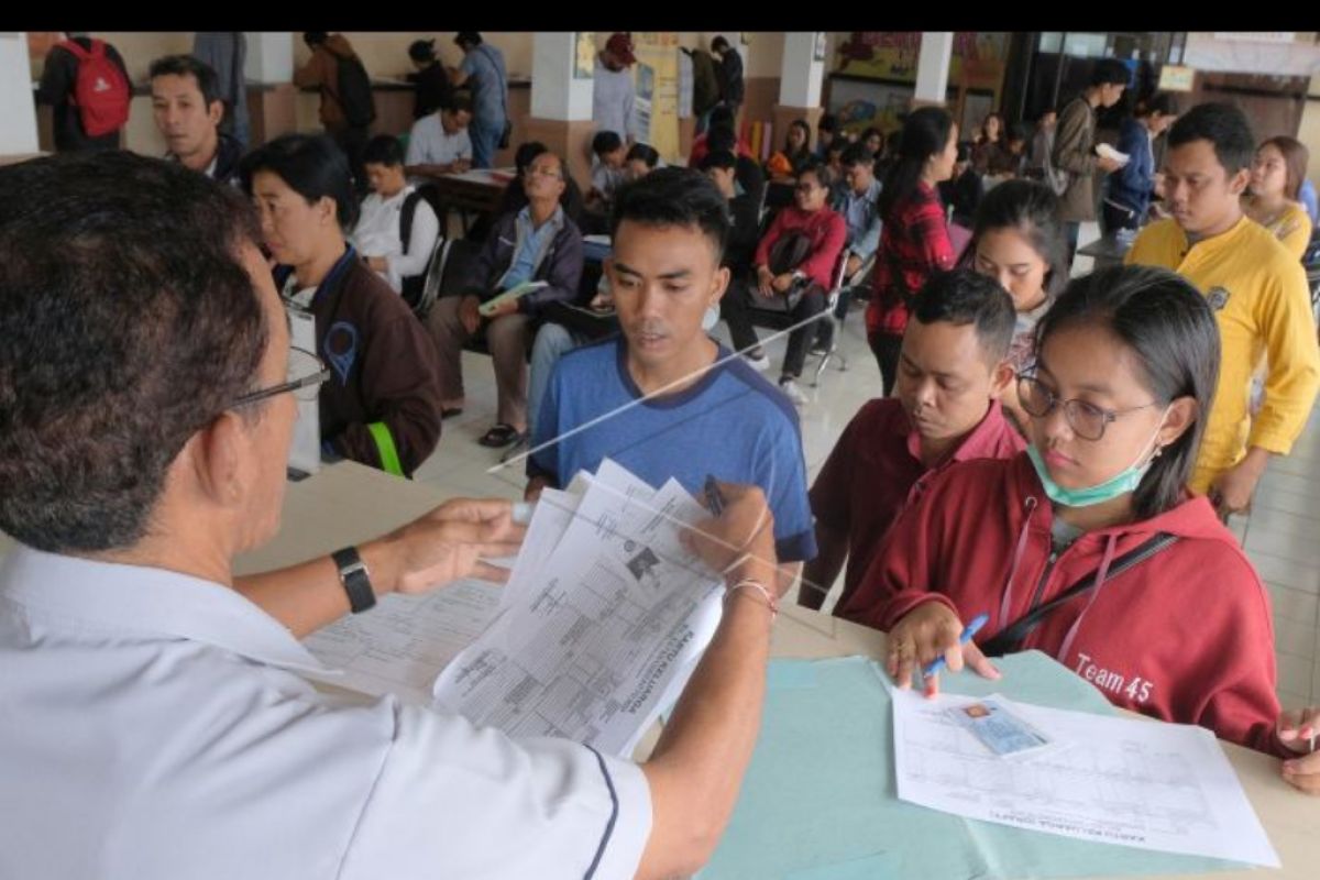 Petugas melayani warga untuk pembuatan Surat Keterangan Catatan Kepolisian (SKCK) di Mapolresta Denpasar, Bali, Kamis (21/11/2019). Menjelang penutupan masa pendaftaran penerimaan Calon Pegawai Negeri Sipil (CPNS) 2019 pada Minggu (24/11), jumlah warga yang memohon SKCK di Polresta Denpasar masih terus meningkat dari sekitar 100 orang per hari menjadi sekitar 200 orang per hari. ANTARA FOTO/Nyoman Hendra Wibowo/nym