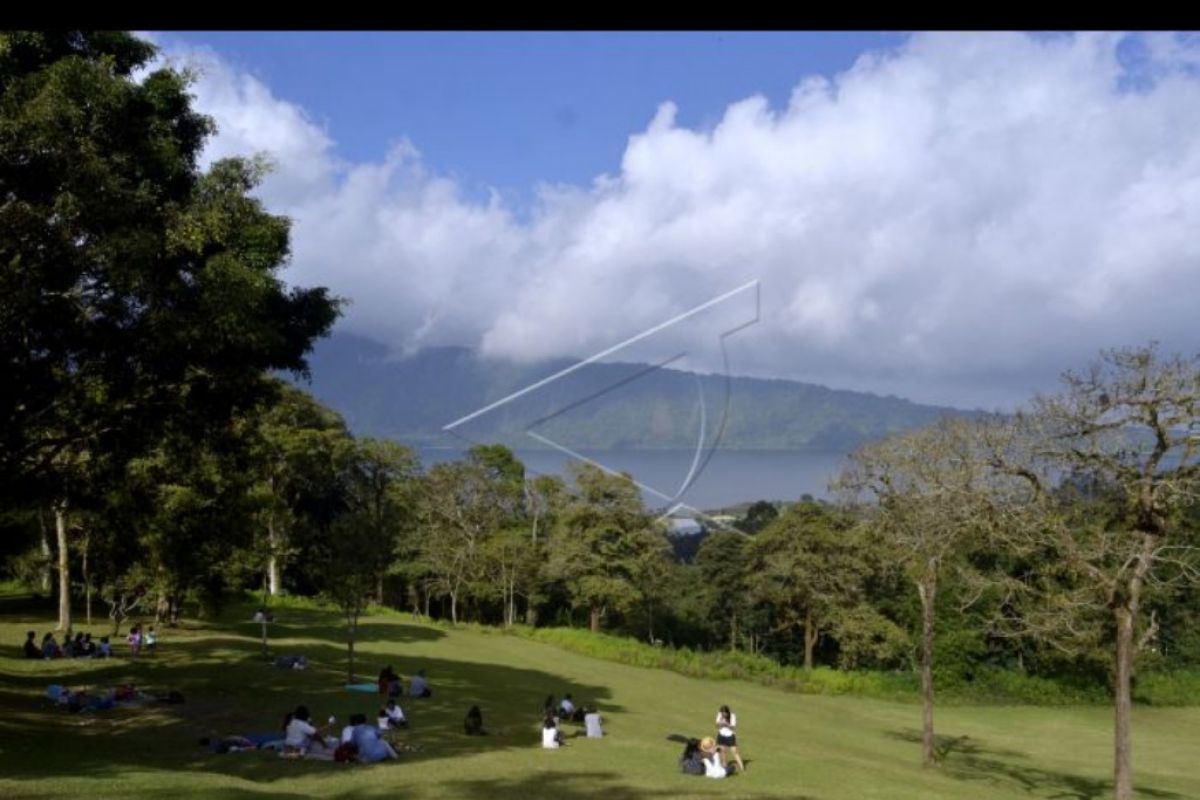 Wisatawan menikmati pemandangan di kawasan Kebun Raya Eka Karya Bali, Tabanan, Bali, Minggu (23/8/2020). Kebun Raya Bali dipadati oleh ribuan pengunjung yang didominasi masyarakat lokal Bali yang berwisata memanfaatkan hari terakhir libur panjang akhir pekan. ANTARA FOTO/Fikri Yusuf/nym
