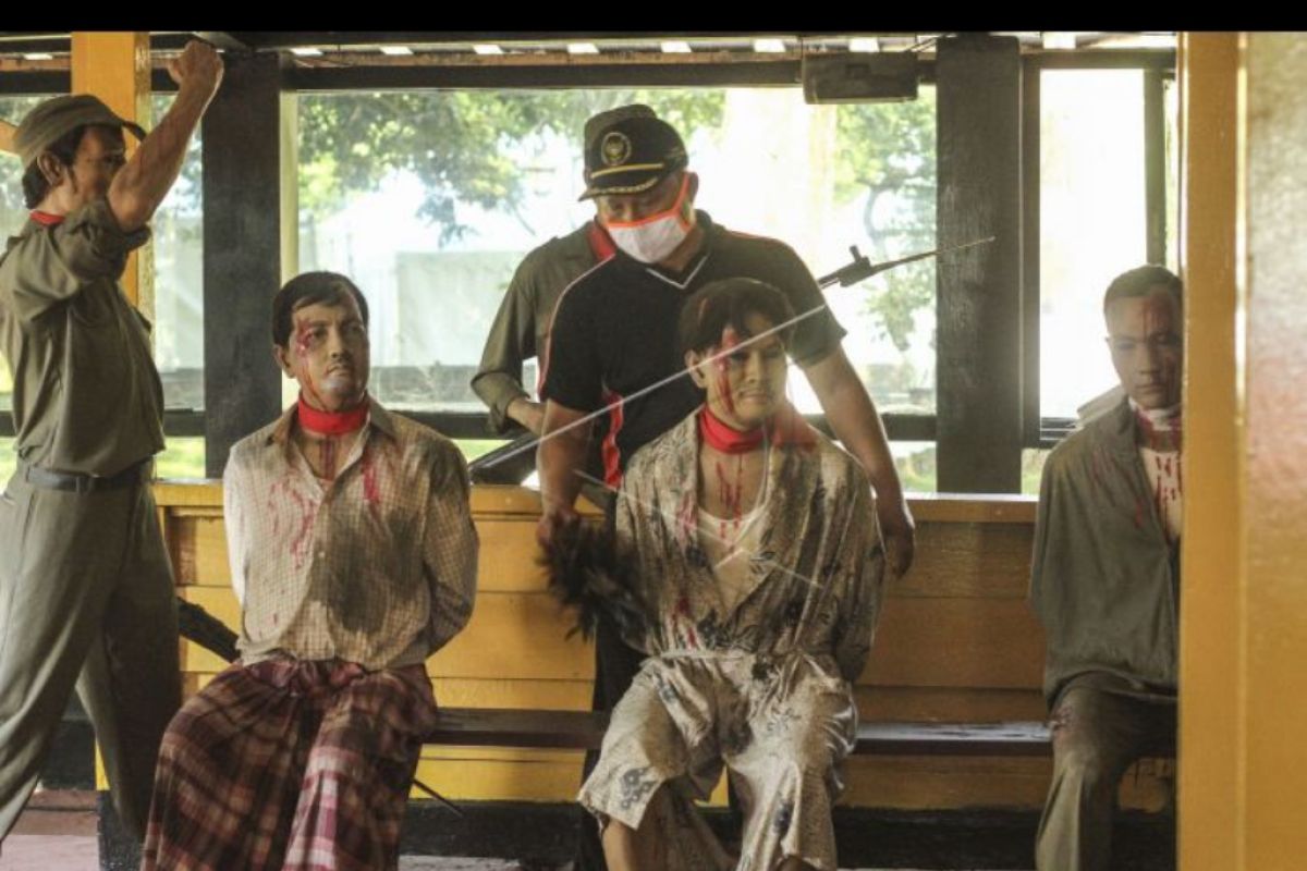 Petugas membersihkan patung peristiwa G30S/PKI di Lubang Buaya, Jakarta Timur, Rabu (30/9/2020). Peringatan Hari Kesaktian Pancasila akan diselenggarakan pada tanggal 1 Oktober 2020 di lokasi tersebut. ANTARA FOTO/Asprilla Dwi Adha/nym.