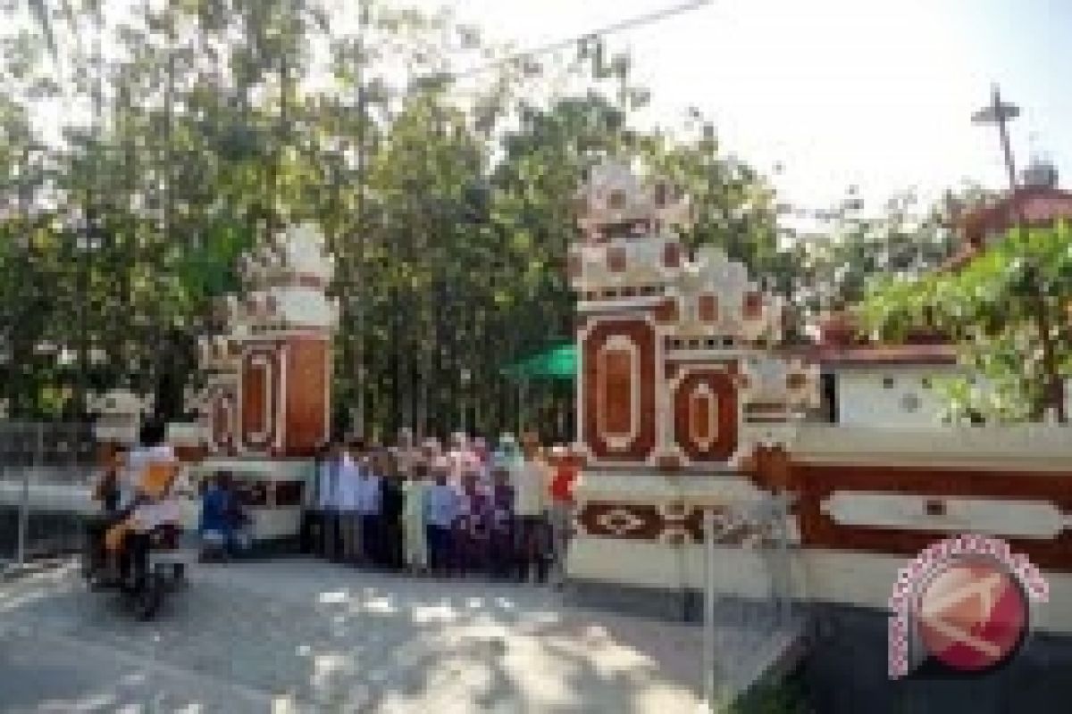 "Saya diminta membangun gapura dan pagar dengan pola Pura Bali," ucap Kandra yang mengaku bekerja sebagai tukang bangunan sejak 15 tahun lalu.