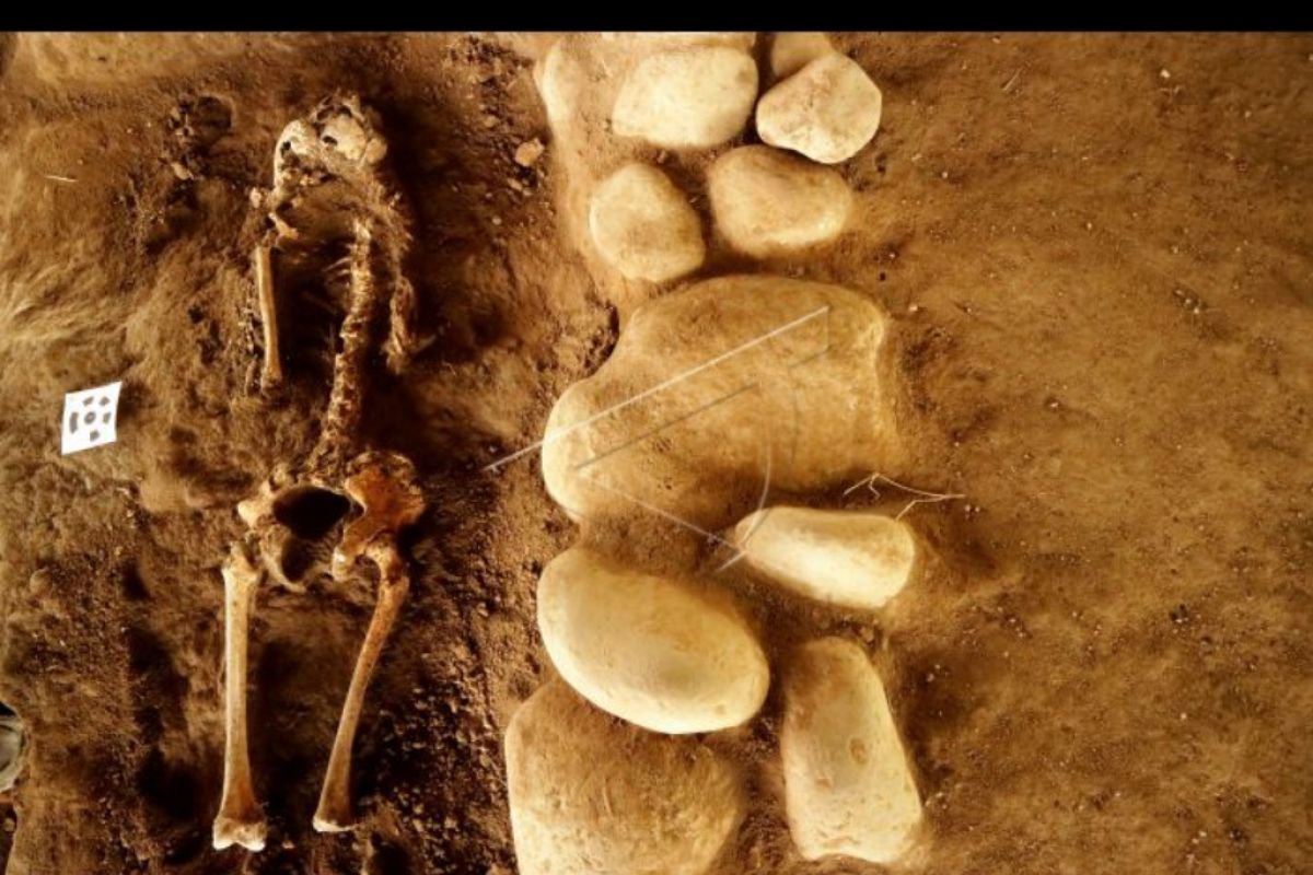 Detil kerangka manusia yang ditemukan tim arkeolog dari Balai Pelestarian Cagar Budaya (BPCB) Jatim saat ekskavasi tahap ketiga di sektor B situs Kumitir di Dusun Bendo, Desa Kumitir, Kecamatan Jatirejo, Kabupaten Mojokerto, Jawa Timur, Rabu (24/3/2021). Ekskavasi (penggalian) tahap ketiga di Situs Kumitir yang dilakukan sejak awal Maret 2021 itu untuk mencari kepastian lebar struktur keliling di sisi utara selatan cagar budaya yang diduga sebagai istana Bhre Wengker di Kompleks Kotaraja Majapahit, dan BPCB juga masih menantikan hasil kajian tim ahli terkait penemuan kerangka manusia. ANTARA FOTO/Syaiful Arif/nym.