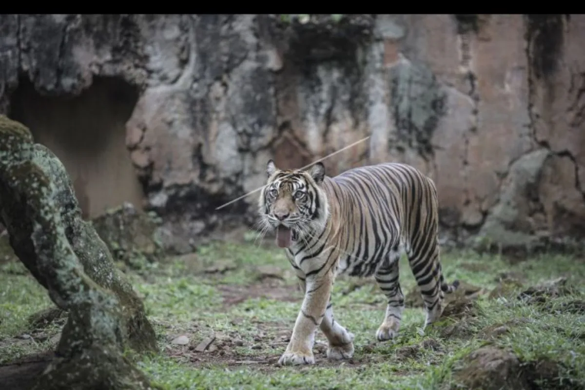 Salah satu Harimau Sumatra yang terpapar COVID-19, Tino berada di dalam kandang di Taman Margasatwa Ragunan (TMR), Jakarta, Minggu (1/8/2021). Dua Harimau Sumatra penghuni Taman Margasatwa Ragunan, Hari dan Tino yang didiagnosis positif COVID-19 pada 15 Juli lalu saat ini kondisinya sudah mulai membaik setelah mendapatkan perawatan intensif dari tim dokter. ANTARA FOTO/Dhemas Reviyanto/nym.