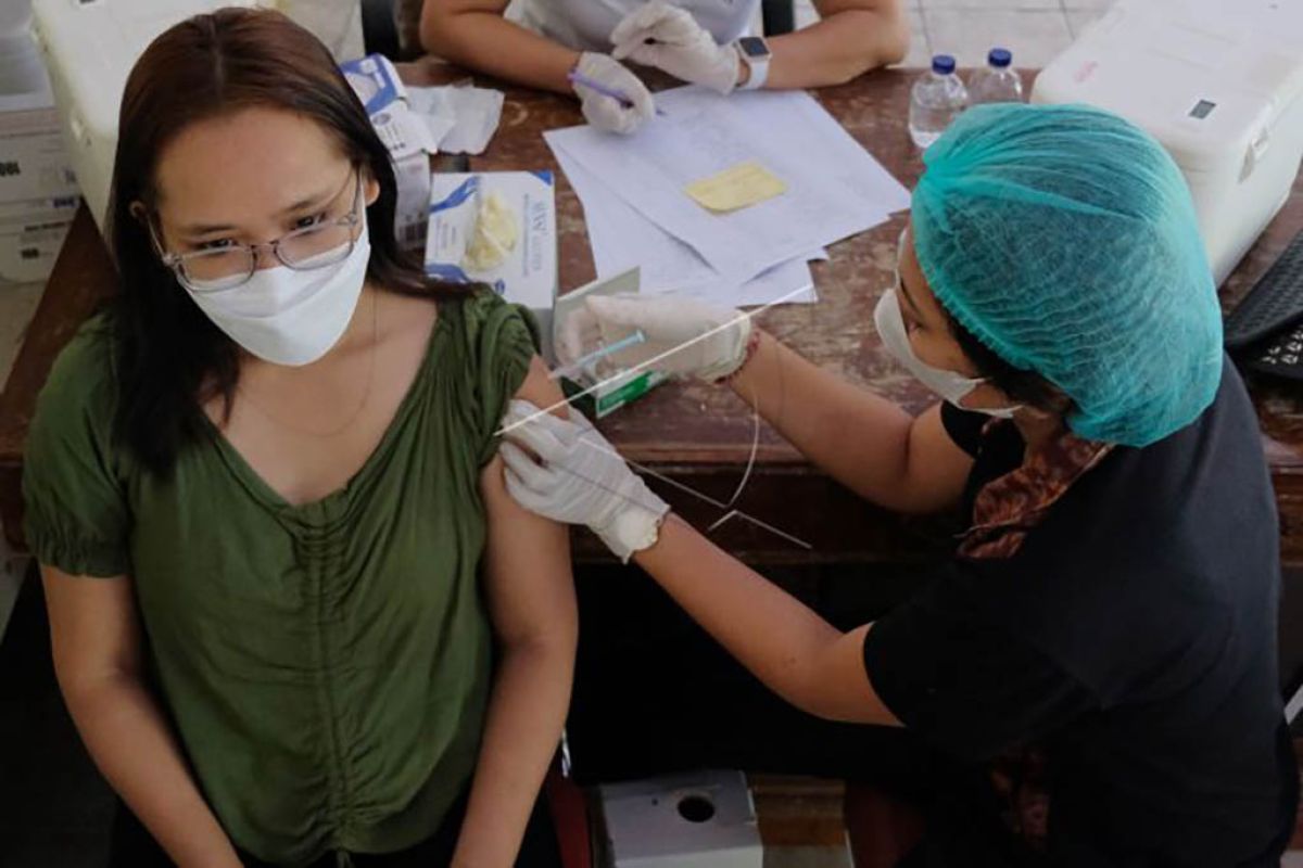 Petugas kesehatan menyuntikkan vaksin dosis ketiga kepada warga di Denpasar, Bali, Selasa (14/6/2022). Dinas Kesehatan Provinsi Bali mengimbau masyarakat untuk mengikuti program vaksinasi COVID-19 dosis ketiga atau penguat (booster) sebagai antisipasi penyebaran COVID-19 subvarian Omicron BA.4 dan BA.5. ANTARA FOTO/Nyoman Hendra Wibowo/nym.