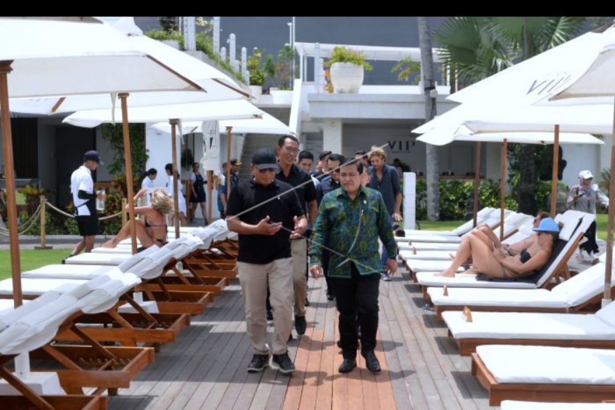 Plt Dirjen Imigrasi Widodo Ekatjahjana (kanan) memimpin sidak aktivitas pariwisata yang melibatkan warga negara asing di sebuah beach club di kawasan Kuta Utara, Badung, Bali, Senin (3/10/2022). Sidak tersebut dilakukan untuk mengantisipasi adanya tenaga kerja asing ilegal yang bekerja di kawasan wisata di Bali serta untuk mendekatkan pelayanan Imigrasi kepada pelaku usaha dan WNA. ANTARA FOTO/Fikri Yusuf/nym.