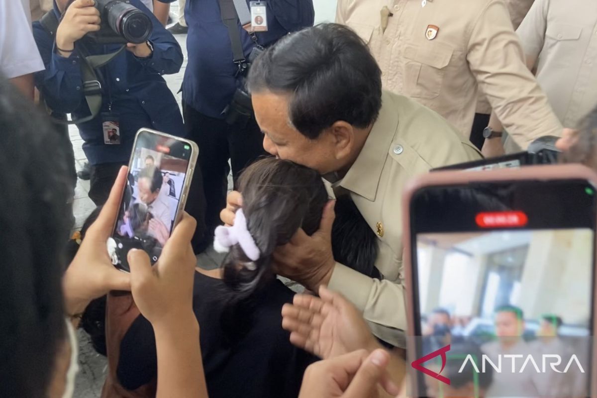 Selepas peresmian dan kunjungan ke gedung kecantikan itu, Presiden Prabowo Subianto kembali menyapa masyarakat, termasuk mencium dan memeluk ketiga anak Ni Luh Sariani.