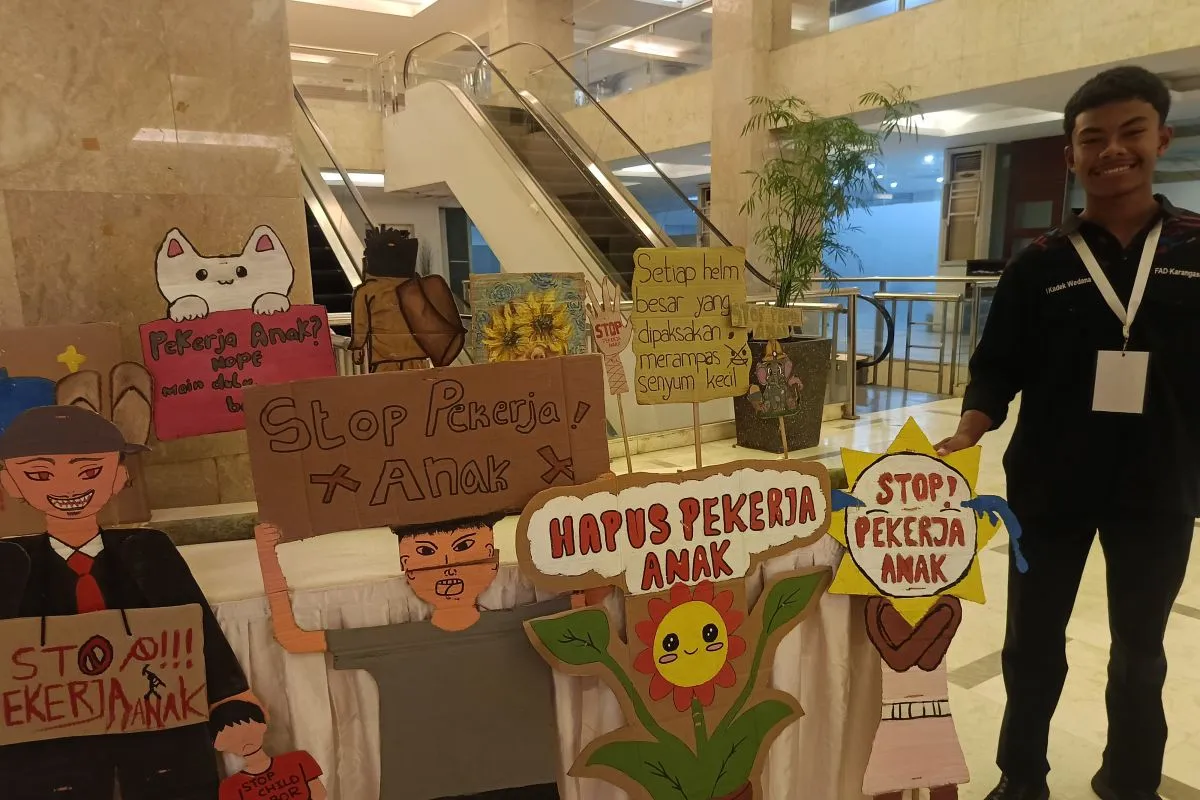 "Kami memanfaatkan karton bekas yang dilukis anak-anak forum anak daerah sebagai bentuk keberpihakan kami pada isu keberlanjutan. Kami juga ingin menunjukkan bahwa setiap anak memiliki pola pikir sendiri karena itu tidak baik untuk menghalangi cita-cita mereka dengan berbagai bentuk eksploitasi," katanya.