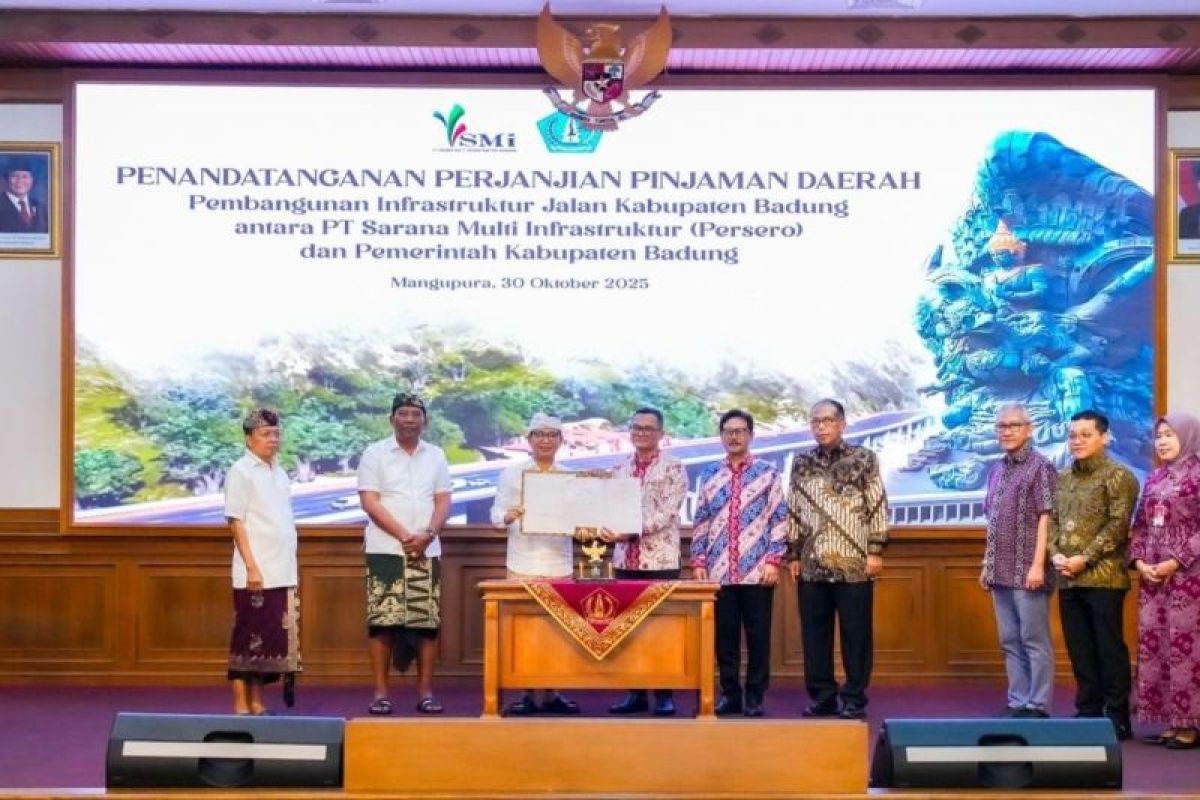 Denpasar (ANTARA) - Untuk akselerasi pembangunan infrastruktur jalan guna mengurai kemacetan di kawasan Kuta Selatan dan Kuta Utara, Bupati Badung I Wayan Adi Arnawa didampingi Ketua DPRD Badung I Gusti Anom Gumanti menandatangani Perjanjian Pinjaman Daerah Pembangunan Infrastruktur Jalan Kabupaten Badung antara PT. Sarana Multi Infrastruktur (SMI) (Persero) dengan Pemkab Badung, bertempat di Ruang Kertha Gosana, Puspem Badung, Kamis (30/10).