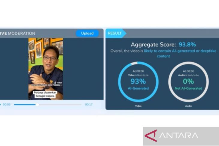 ANTARA juga memeriksa video tersebut menggunakan AI Detector Hive Moderation dan hasilnya menunjukkan video itu kuat terindikasi merupakan hasil kecerdasan buatan (AI).
