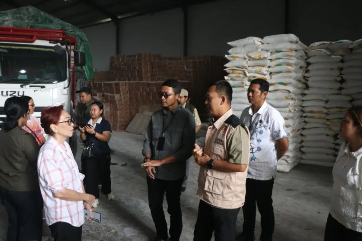 Selain mengecek harga 14 bahan pokok penting (bapoting), Satgas Saber Pangan juga berkesempatan meninjau serta melakukan pengecekan stok dan ketersediaan beras di gudang Bulog, Jalan Raya Sempidi.