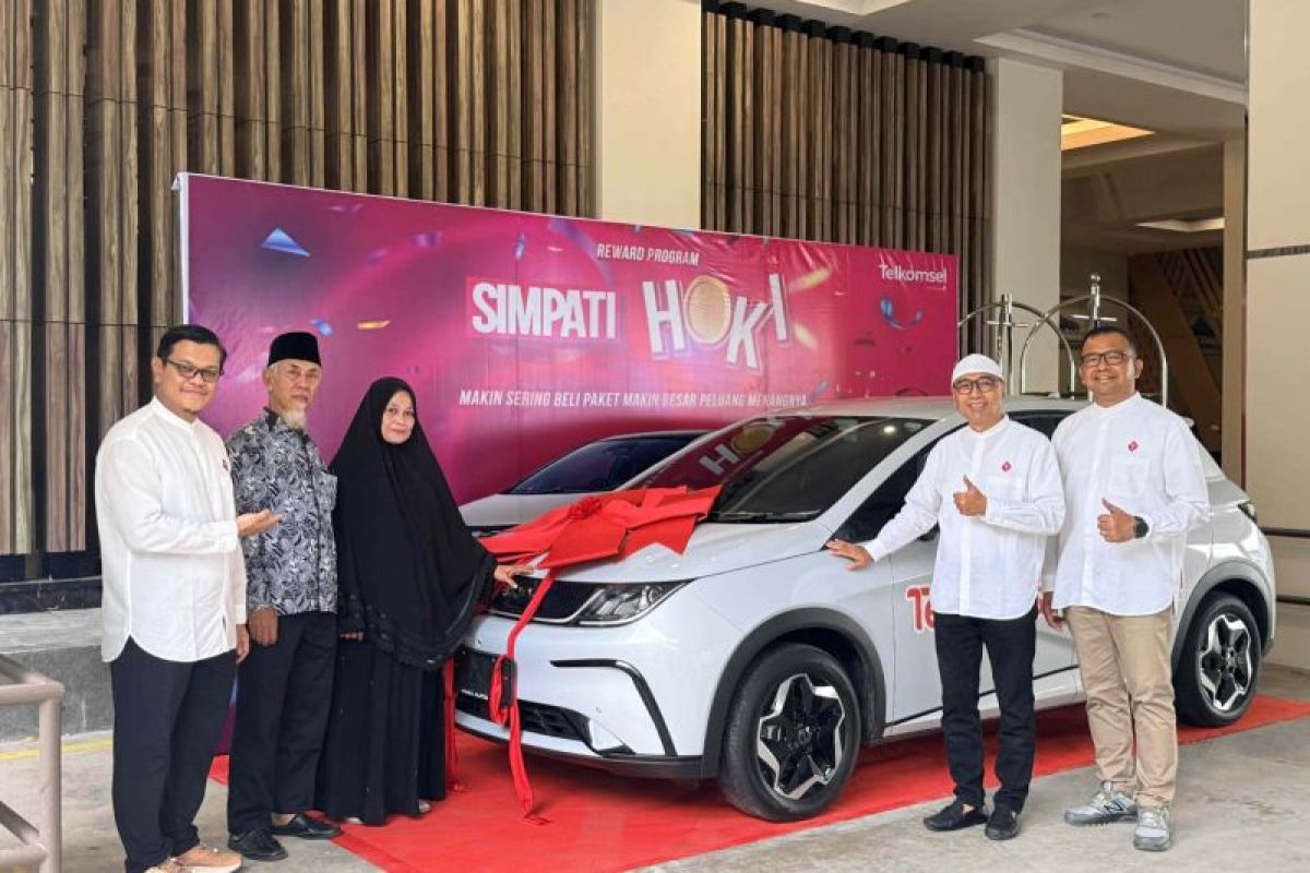 Denpasar (ANTARA) - Seorang pelanggan setia Telkomsel asal Bima, Siti Dewi Masitoh berhasil mendapatkan hadiah utama berupa mobil listrik BYD melalui program Simpati Hoki.