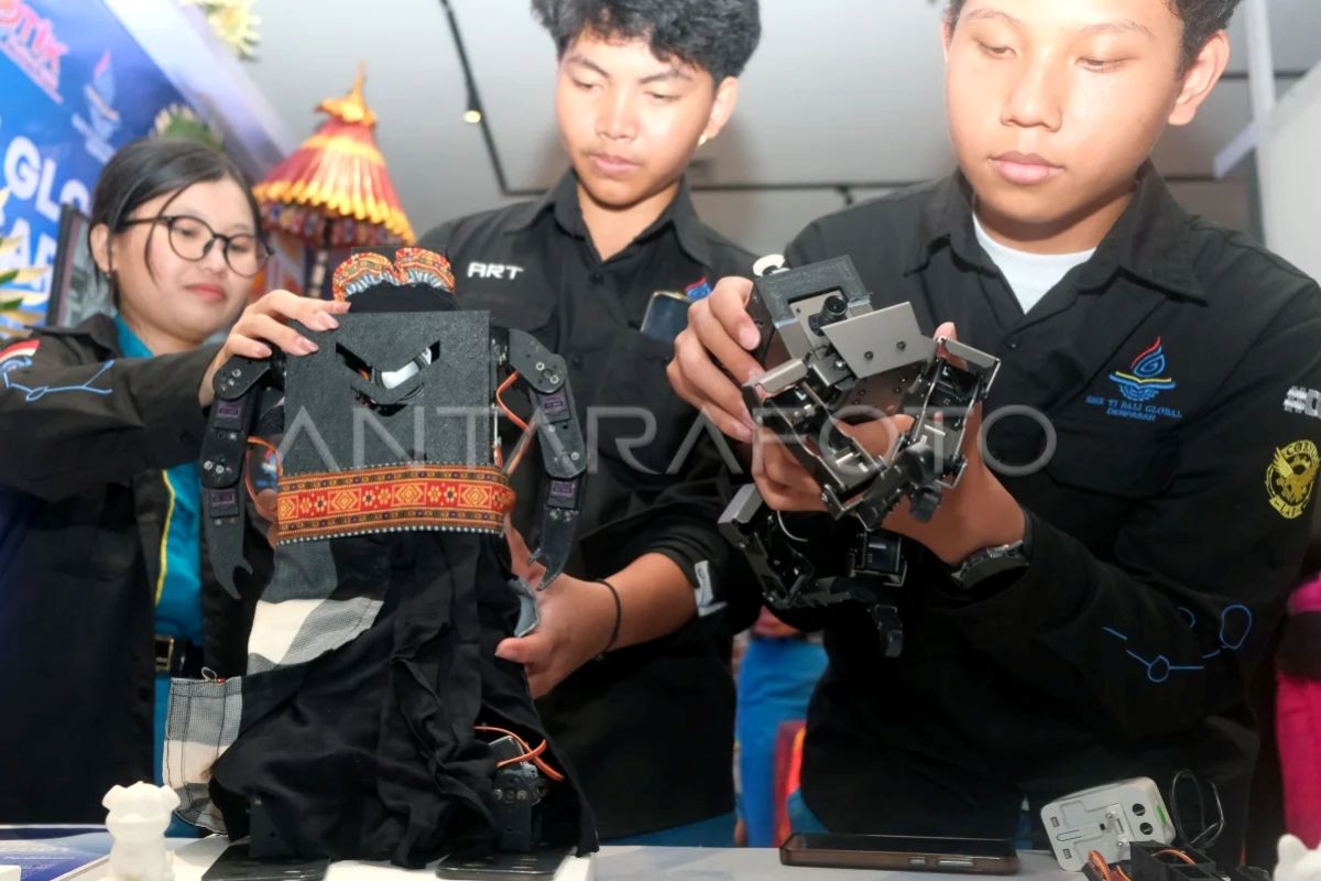 Siswa SMK TI Global Denpasar memeriksa robot inovatif karyanya saat pameran Denpasar Teknologi Informasi dan Komunikasi Festival (DTIK Fest) tahun 2026 di Gedung Dharma Negara Alaya, Denpasar, Bali, Jumat (27/2/2026). Kegiatan yang digelar Dinas Komunikasi, Informatika dan Statistik (Diskominfos) Kota Denpasar pada 27 Februari hingga 1 Maret tersebut mengusung tema Harmonizing Technology for a Greener Tomorrow dengan menampilkan berbagai inovasi teknologi di antaranya pembuatan robot, animasi, dan virtual reality (VR) atau realitas maya.
