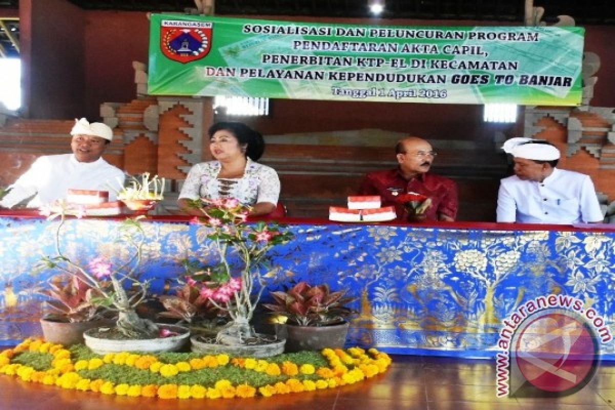 Karangasem (Antara Bali) - Bupati Karangasem I Gusti Ayu Mas Sumatri meluncurkan pendaftaran Akta Catatan Sipil (Capil), KTP-el di kecamatan dan pelayanan `Goes to Banjar` sebagai upaya untuk meningkatkan pelayanan administrasi kependudukan di wilayah setempat.