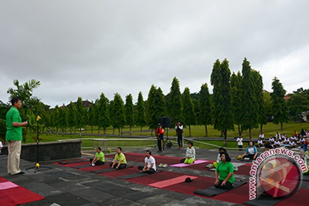 Acara yoga yang diikuti oleh Ketua Tim Penggerak PKK Provinsi Bali Ayu Pastika, Rektor Unhi, Kepala Biro Humas Setda Provinsi Bali dan 200 orang peserta secara bersama-sama mengikuti Mandara Yoga dengan dipandu oleh Dr I Gusti Bagus Wirawan. (WDY)