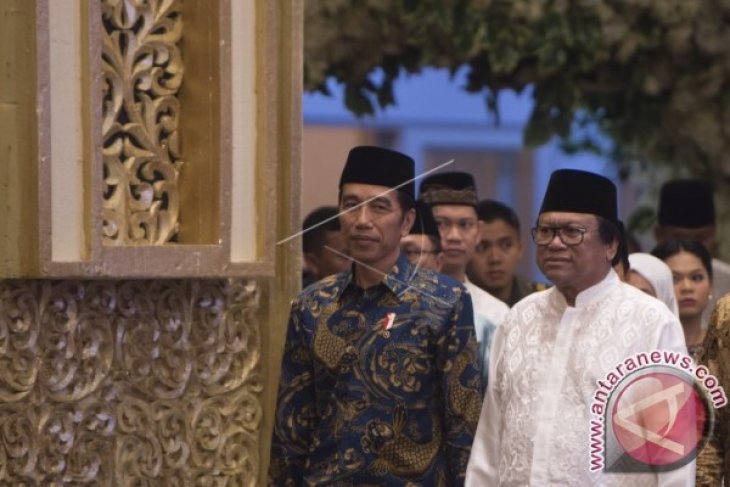 President Jokowi attended the fast-breaking gathering at the resudence of Oesman Sapta Odang in the company of minister/state secretary Pratikno. He was welcomed upon arrival by the DPD chief and his family at 5.22pm.