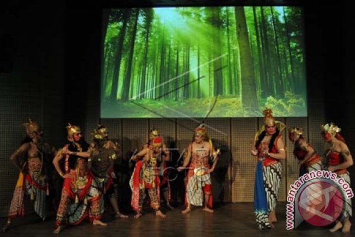 Sejumlah jurnalis dari berbagai media yang tergabung dalam Sahabat Indonesia Kaya tampil dalam pementasan wayang jurnalis Wahyu Cakraningrat di Auditorium Galeri Indonesia Kaya, Grand Indonesia, Jakarta, Kamis (2/10) malam. Pementasan bersama 80 jurnalis dengan Wayang Orang Bharata tersebut menampilkan karya cerita wayang adiluhung dengan kemasan kekinian, populer dan komunikatif dengan cerita seputar profesi kerja jurnalis. ANTARA FOTO/Teresia May/i018/2014.
