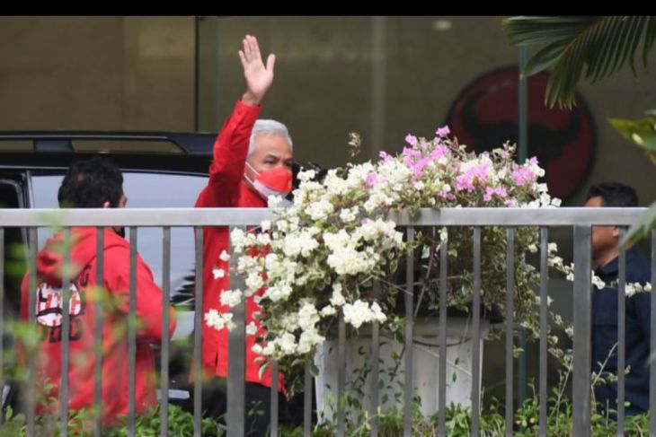 Gubernur Jawa Tengah Ganjar Pranowo tiba di Kantor DPP PDI Perjuangan, Jakarta, Senin (24/10/2022). Kedatangan Ganjar Pranowo itu untuk memenuhi panggilan DPP PDI Perjuangan guna mengklarifikasi pernyataannya soal siap menjadi calon presiden (capres) 2024. ANTARA FOTO/Hafidz Mubarak A/nym.